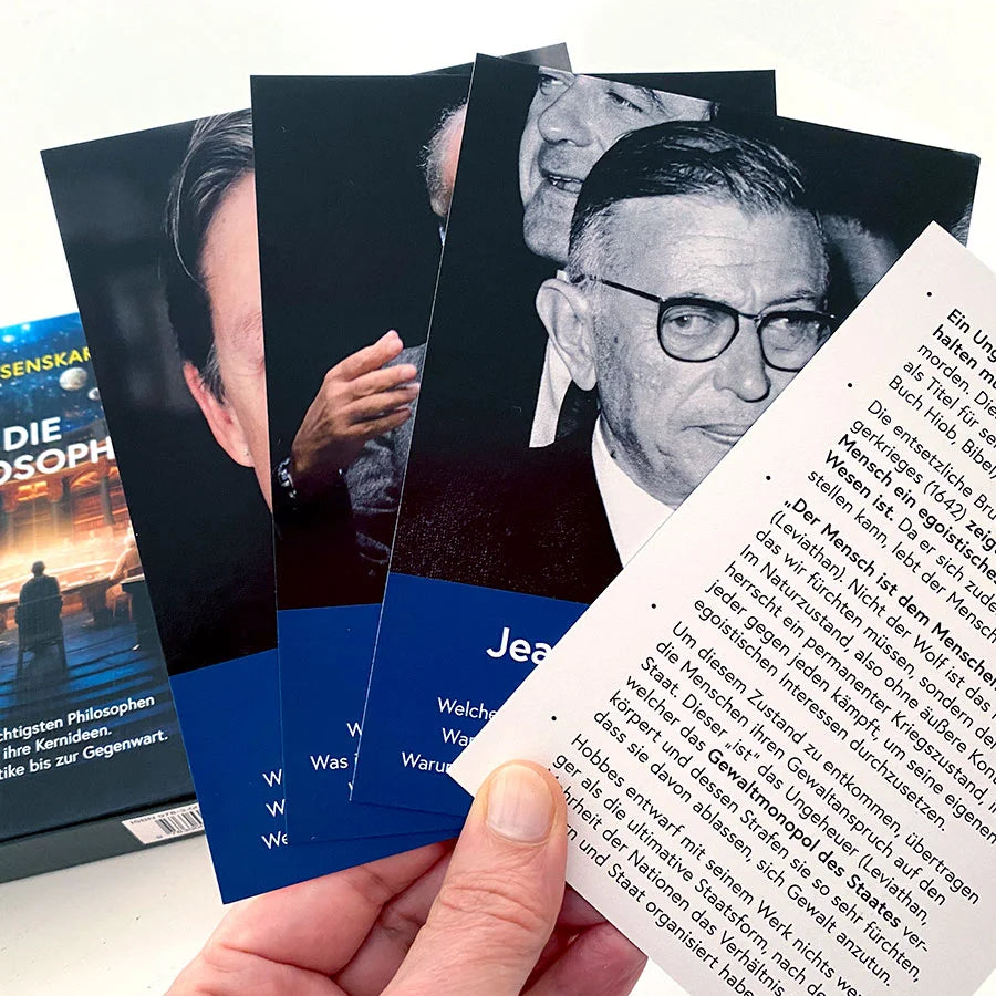 Erkunde auf 25 Wissenskarten die wichtigsten Philosophen und ihre Kernideen: Eine lehrreiche Reise von der Antike bis in die Moderne.